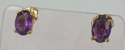 Lot #188 - A Pair of 14ct Gold and Amethyst Stud Earrings