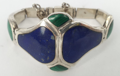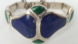 Lot Description:A Contemporary Silver Lapis Lazuli and Malachite Bracelet