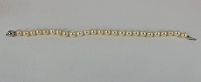 Lot Description:A Cultured Pearl and 9ct White Gold Bracelet