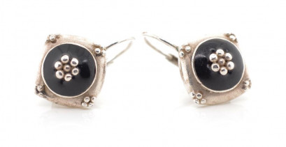 Lot Description:Vintage silver and black enamel earrings
