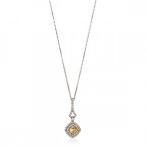 Lot Description:18ct bi-colour gold natural fancy yellow diamond and diamond pendant necklace
