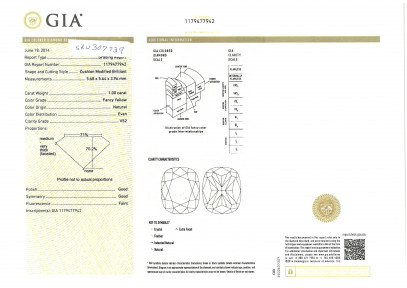 Notes:Accompanied by a GIA report numbered 1179477942 dated 18 June 2014 stating that the 1.00 carat diamond is natural fancy yellow colour VS2 clarity.