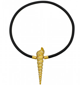 The spring-loaded clasp modelled as a textured turret shell embellished at intervals with brilliant-cut diamonds to a nitrile collar terminating in gold mounts.
