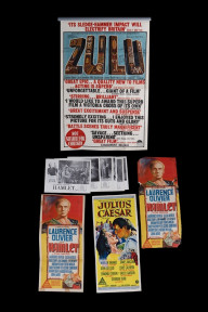 Incl. full sheet UK issue Zulu (1964), Hamlet daybill (2), one trimmed 1948, with eight lobby cards, & Julius Caesar (1953), Australian issue. One Hamlet in poor condition, others fair to good.