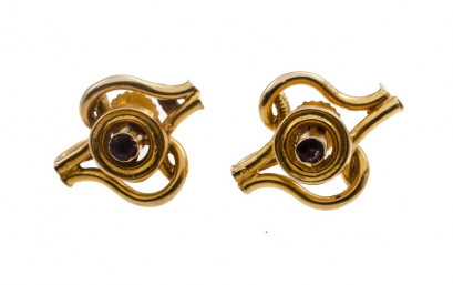 Lot #873 - 9ct Yellow Gold & Purple Stone Earrings