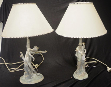 Lot Description:Two Lladro figural base ceramic table lamps