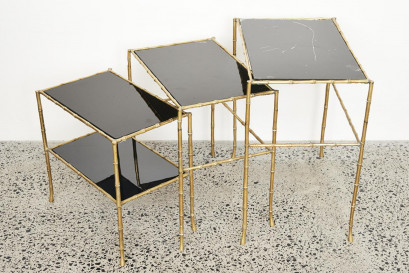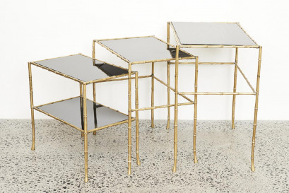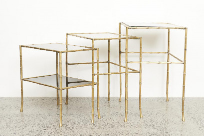brass faux bamboo frames, and glass, comprising three graduated tables (3)