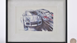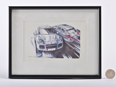 Lot Description:PORSCHE/CAYENNE: A framed and glazed print by Stephen Mukett, chief exterior designer of the Cayenne