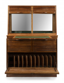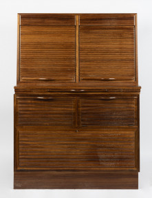 Lot Description:A blackbean tambour front cocktail cabinet by Schulim Krimper, circa 1960