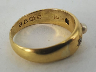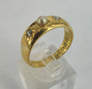 Lot Description:A Victorian 18ct Gold Diamond And Split Pearl Ring