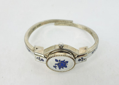 Lot Description:An Andre Mouche Swiss Enamel Bracelet Watch