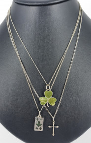 on sterling silver chains. Together with a sterling silver crucifix on sterling silver chain. Weight (all in) 11.9g. (3) -