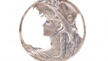 with pierced work bust of a lady, marked London 1994. Approx dia. 40.5mm -
