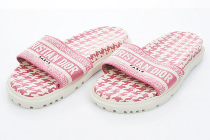 peony pink embroidered cotton with micro houndstooth motif with chunky rubber sole, stamped 'Christian Dior Paris', embossed sole 'Dior Made in Italy', with dust bag and box, unworn