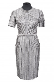 gunmetal grey silk with short sleeves, round neckline, zip at back, labelled 'Burberry Prorsum made in Italy', with dust bag