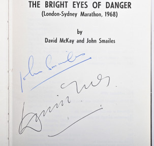 Lot #331 - DAVID MCKAY / JOHN SMAILES: A signed copy of "The Bright Eyes of Danger, London to Sydney Marathon 1968" by David McKay and John Smailes