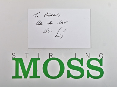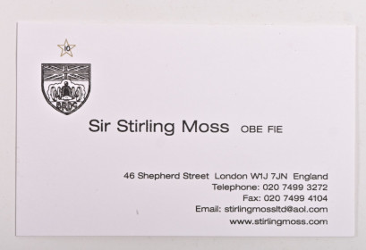 with business card signed by Stirling Moss -