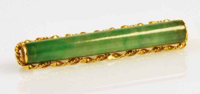 Lot Description:22ct Gold and Jade Bar Brooch