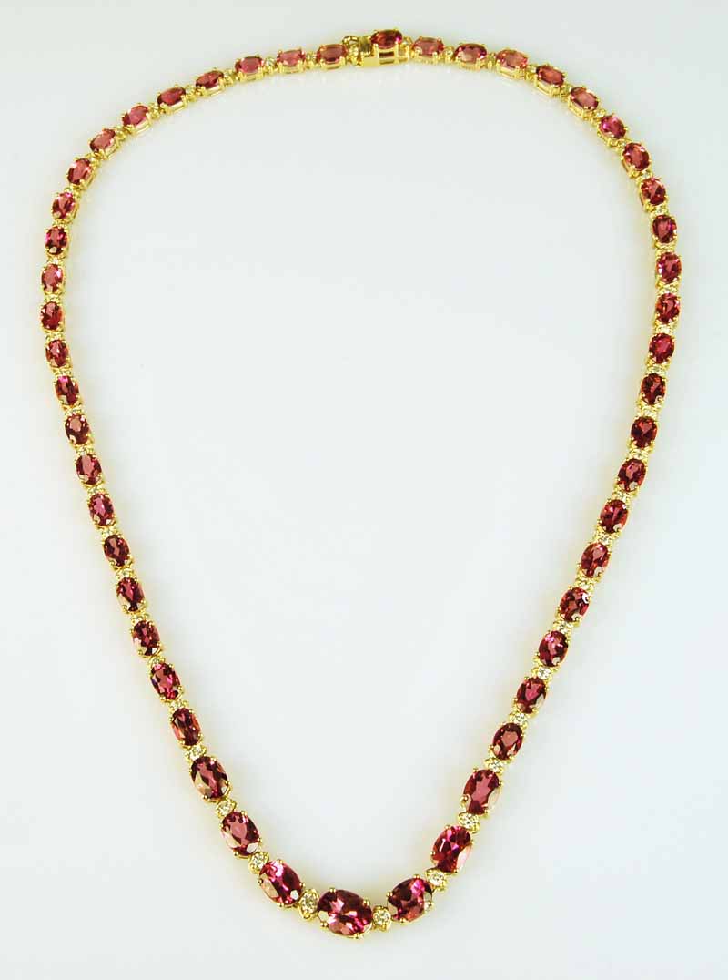 Lot Description:14ct Yellow Gold Tourmaline and Diamond Necklace