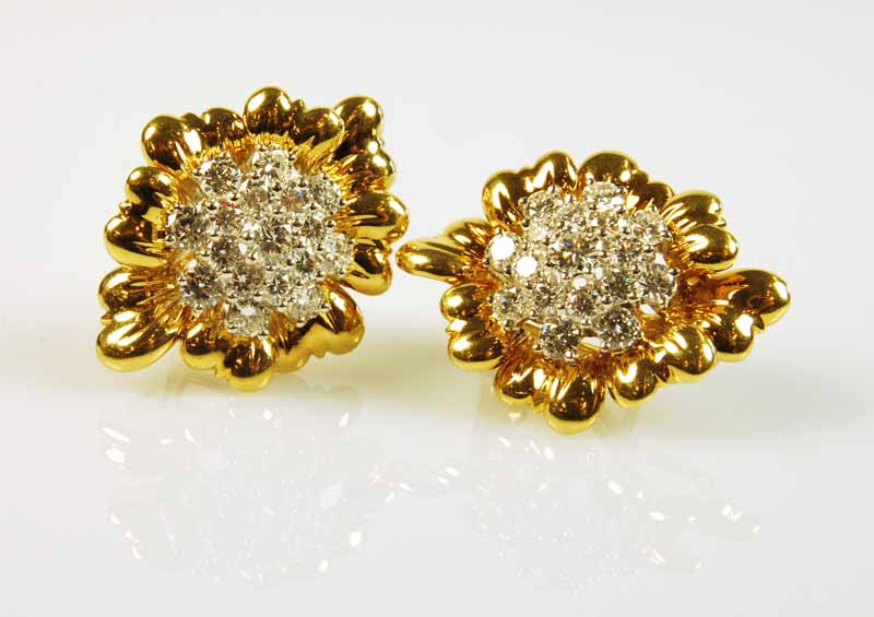 Lot Description:18ct Yellow Gold & Diamond Cluster Earrings