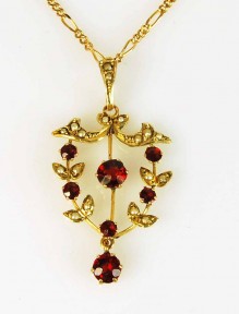 Lot Description:Australian 9ct Yellow Gold Seed Pearl and Garnet Topped Doublet Pendant