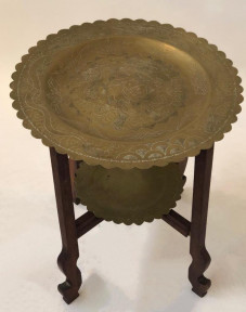Lot #293 - A Chinese style etched brass two-tier tray table