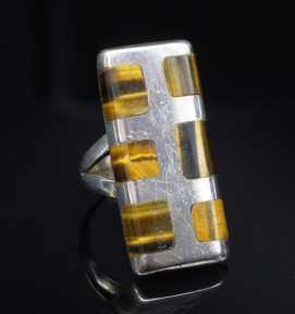 Lot Description:Modernist Tigers eye set sterling silver ring