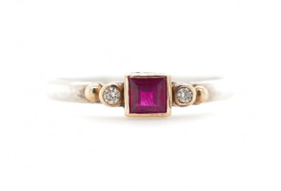 Lot Description:Ruby & diamond set silver & rose gold ring