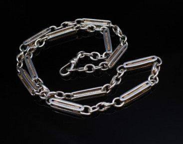 Lot Description:Early 20th C. silver fancy link fob chain