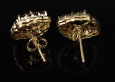 Lot Description:Sapphire set two tone 9ct gold cluster stud earrings
