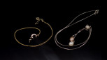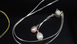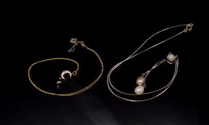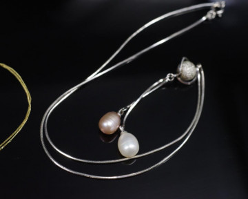 Approx length 42cm, chain weight 0.4 grams. As well as a pearl and silver chain. necklace, marked 925, approx 40cm length -
