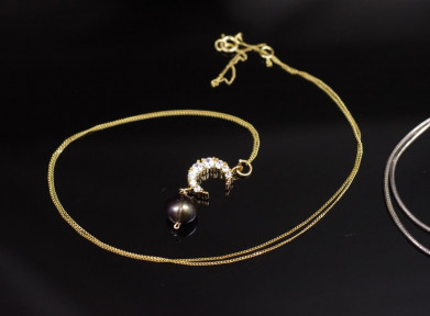 Lot #477 - Pearl set gilded pendant and 9ct yellow gold fine chain