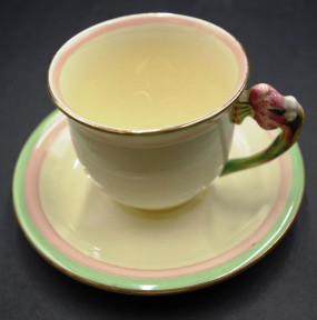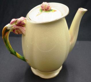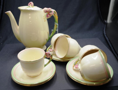 including: coffee pot, and 5 cups and saucers, (plus an additional saucer), with 'Tiger Lily' form handles, marked to bases and # 5773. -