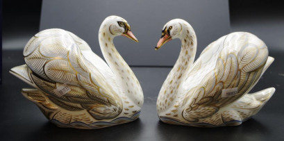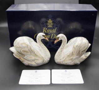Lot Description:Pair Royal Crown Derby "Royal Swan" paperweights