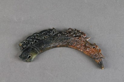 Lot Description:A Chinese Brown Jade Archaic Style Dragon Pendant