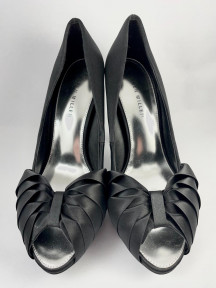 Lot Description:Karen Millen: Black Satin & Grosgrain Ribbon Peep-toe Stilettos