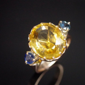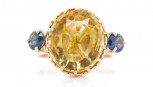 Lot Description:Citrine, sapphire and 9ct rose gold cocktail ring