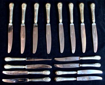 c.1900, handles 950 Paris marks 8 dinner knives and 8 butter knives Stainless steel blades -