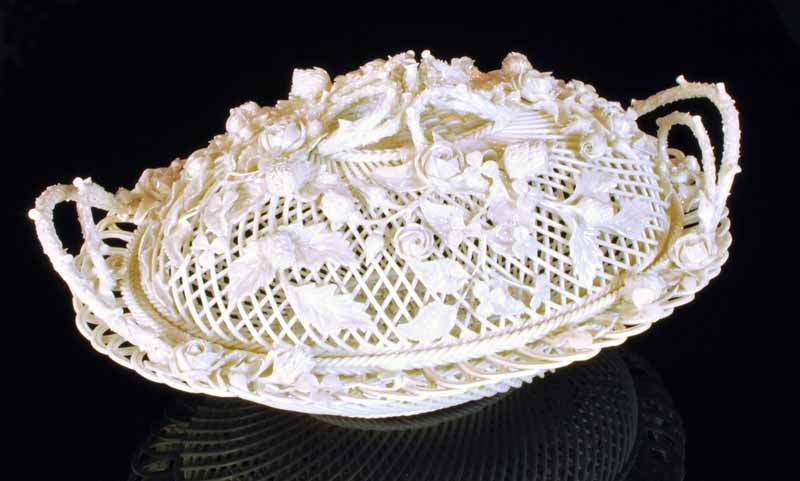 Lot #477 - Rare Belleek Porcelain Basket and Cover