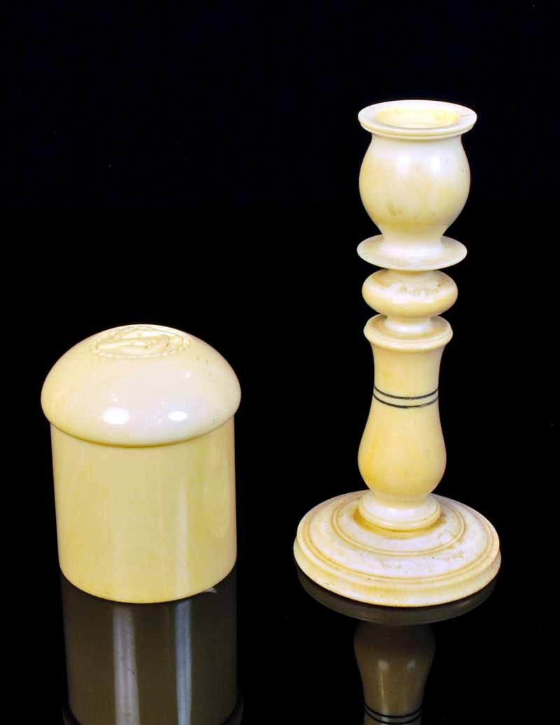Lot Description:i) Turned Ivory Candlestick