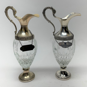 Lot Description:A Pair of Italian Silver Plate & Crystal Ewers with Duck Handle Detail