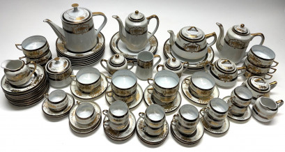 Lot Description:A Kutani, Japan Fine Bone China Tea & Coffee Service with Black & Gilt Detail