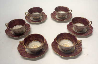 Lot Description:Six Winterling, Germany Demitasse Cups & Saucers with Red & Floral Gilt Detail