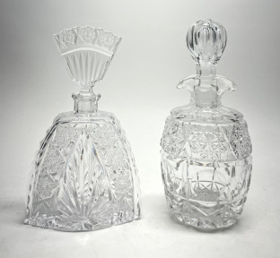 Lot Description:Two Cut Crystal Decanters one with Fan Detail Stopper