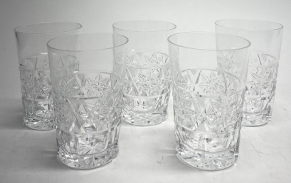 Lot Description:Five Cut Crystal Water Glasses with Cut Star Detail