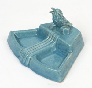 Lot Description:A blue glazed Australian pottery desk tray with kookaburra decoration
