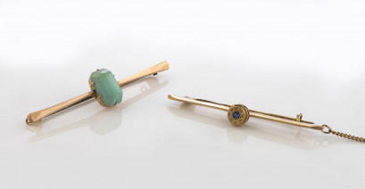 Lot Description:Two antique yellow and rose gold bar brooches, 19th/20th century