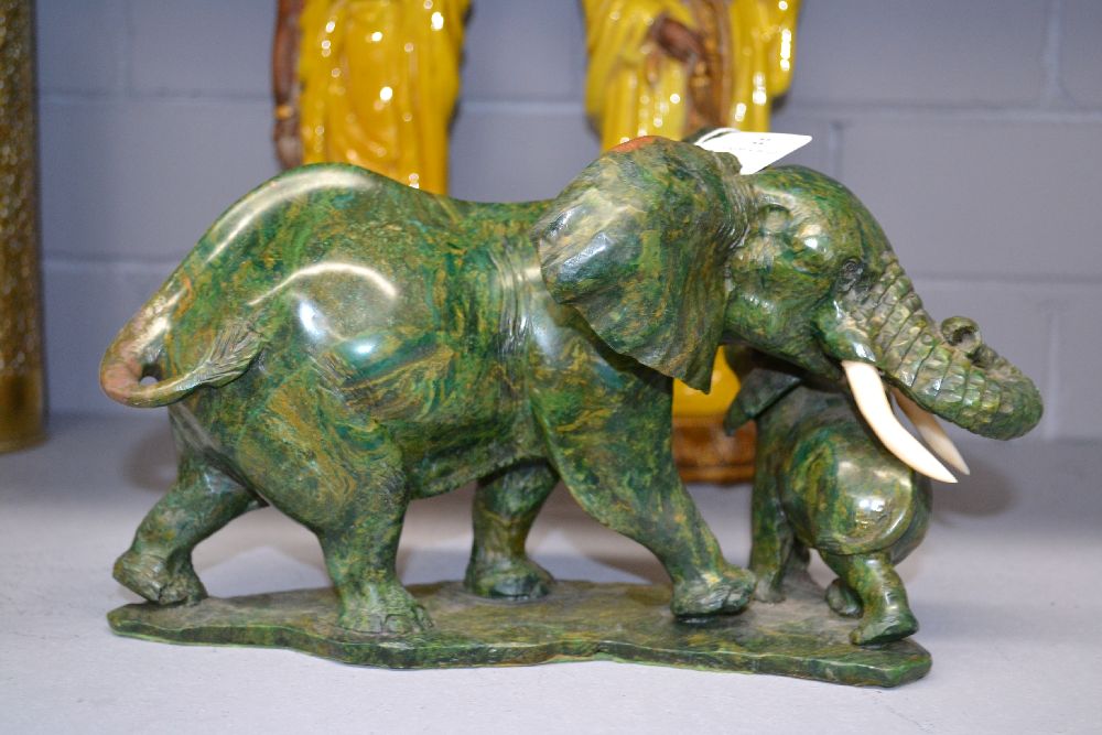 Lot Description:African carved greenstone elephants