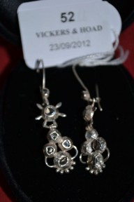 Lot Description:Pair of rose cut diamond and silver drop earrings