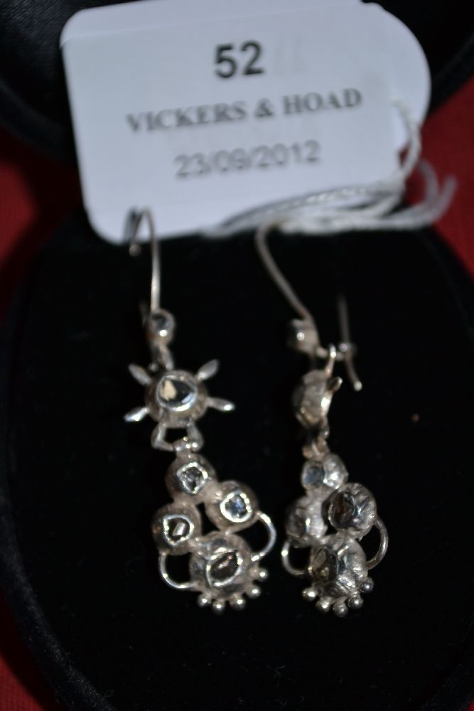 Lot #52 - Pair of rose cut diamond and silver drop earrings